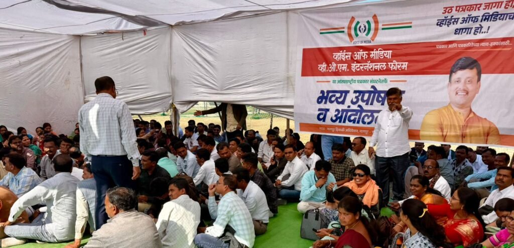 नागपूर : राज्यातील पत्रकार, डिजिटल माध्यमे, साप्ताहिक आणि रेडिओ या पत्रकार यांना भेडसावणाऱ्या गंभीर प्रश्नांबाबत ‘व्हॉईस ऑफ मीडिया’ ‘VOM इंटरनॅशनल फोरम’ च्या वतीने नागपूर हिवाळी अधिवेशनाच्या पार्श्वभूमीवर नागपूर येथील यशवंतराव चव्हाण स्टेटियमवर जोरदार आंदोलन, उपोषण सुरू करण्यात आले आहे. पत्रकार आणि पत्रकारितेशी संबंधित ३३ मागण्यांवर तातडीची कार्यवाही करण्याची मागणी येथे करण्यात आली आहे. राज्यभरातील पत्रकारांनी जोरदार सहभाग नोंदविल्यामुळे हे आंदोलन यशस्वी झाले आहे.
